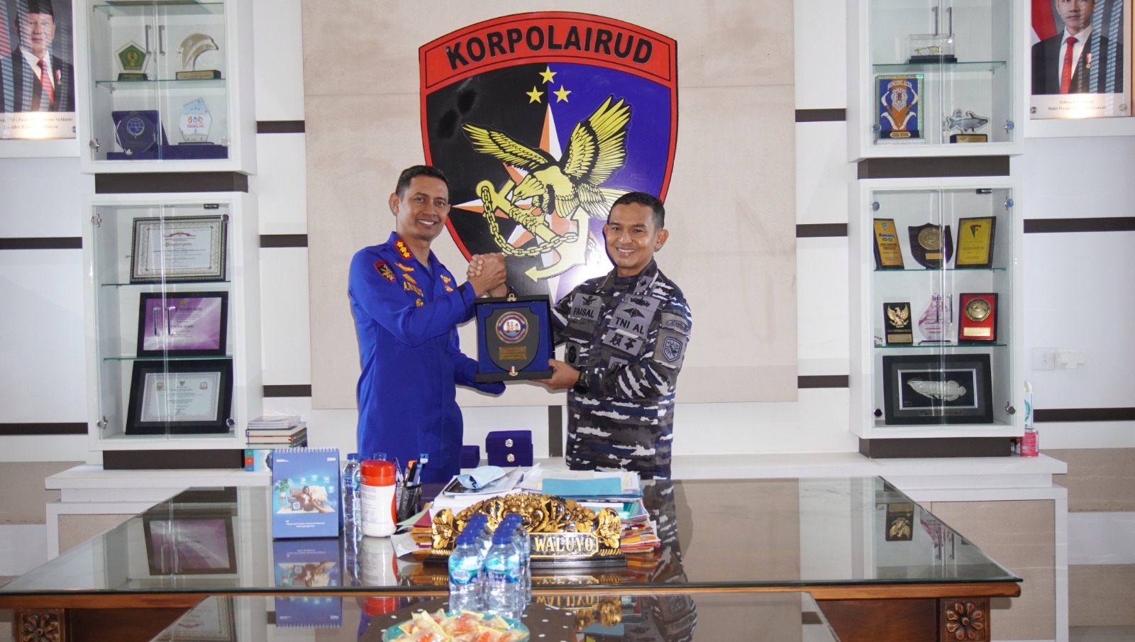 Kedatangan Komandan Pangkalan TNI Angkatan Laut (Danlanal) Palembang Kolonel Laut (P) Faisal ke kantor Direktorat Polairud (Ditpolairud ) Polda Jambi disambut dengan penuh keakraban oleh Direktur Polairud (Dirpolairud) Polda Jambi Kombes Pol Agus beserta Anggota diruang kerjanya.