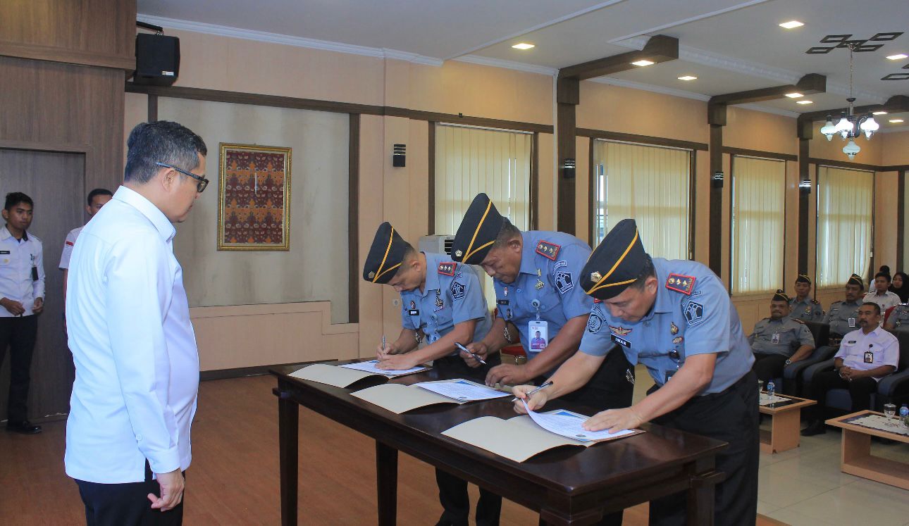 Kegiatan ini berlangsung di aula yang bertujuan sebagai komitmen bersama bagi seluruh jajaran Kanwil Ditjenpas Jambi untuk meningkatkan kinerja, integritas, dan pelayanan publik yang lebih baik.