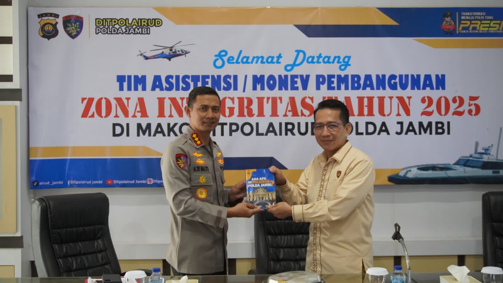 HARIAN PAGI JAMBI.COM-Jambi – Bertempat di Aula Bima Sakti Direktorat Kepolisian Perairan dan Udara (Ditpolairud) Polda Jambi, telah dilaksanakan kegiatan Asistensi/Monev Pembangunan Zona Integritas tahun 2025 oleh tim dari Biro Rena Polda Jambi yang dipimpin oleh Karo Rena Polda Jambi Kombes Pol Herwansyah Saidi serta Kabag RBP Rorena Polda Jambi AKBP Dwi Agung Widodo (20/02/25)