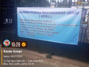 Aksi ini merupakan bentuk kepedulian masyarakat Jambi terhadap transparansi, akuntabilitas, dan pemberantasan korupsi di sektor pembangunan infrastruktur daerah.