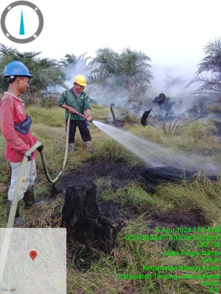 TANJABBAR -Media Harian Pagi Jambi. Com- Perusahaan PT WKS, Distrik 5 bersama Satgas Karhutla TNI melakukan pemadaman api yang membakar perkebunan sawit milik masyarakat Desa Rawang kempas kecamatan B...